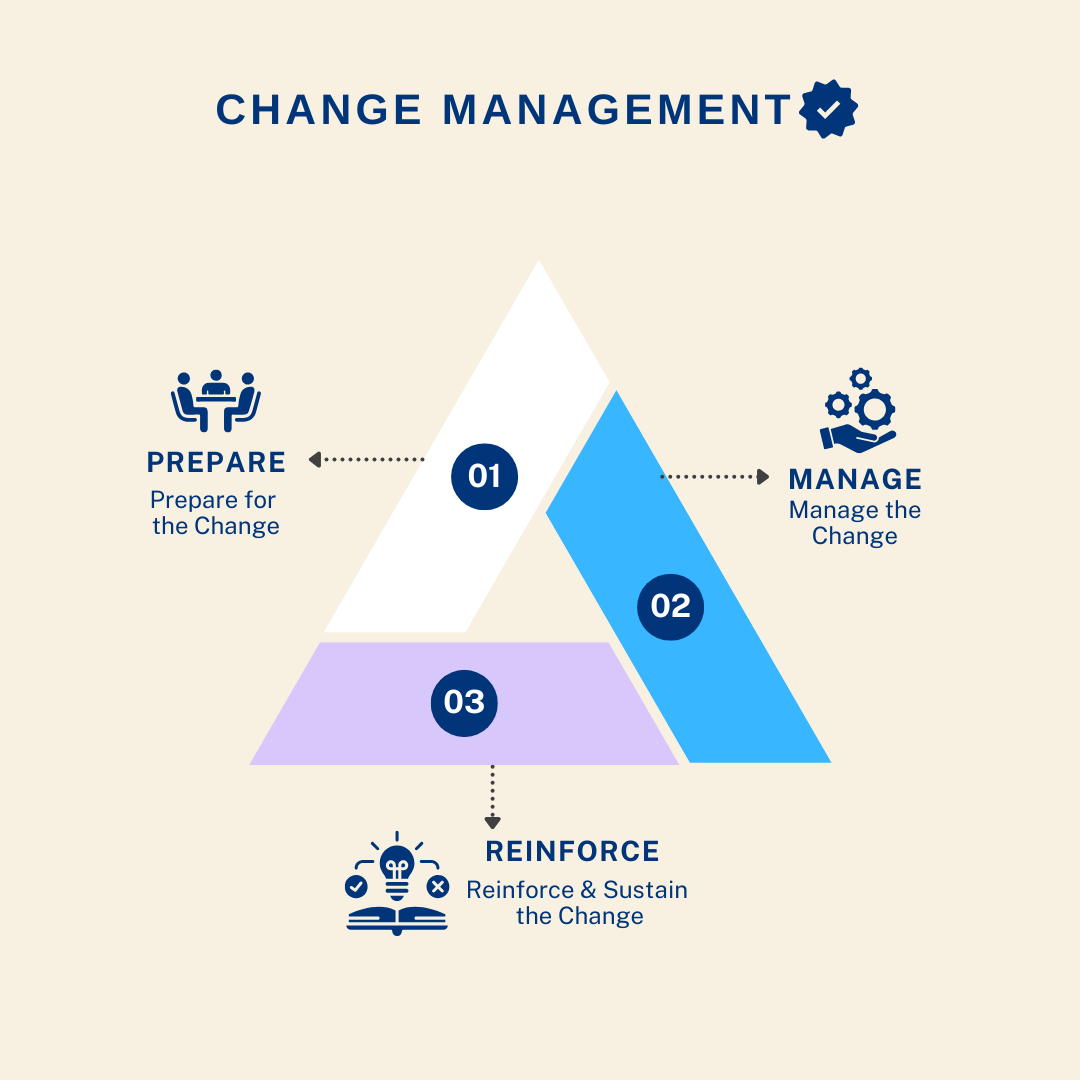 We collaborate closely with your leadership team to develop a structured approach grounded in time-tested frameworks like ADKAR, Kotter, and Just Culture. From engaging stakeholders to crafting effective communication plans, and from prepping your frontline teams to establishing feedback loops, we go beyond just informing your staff. We empower them, making sure they feel not just included but integral to the process.